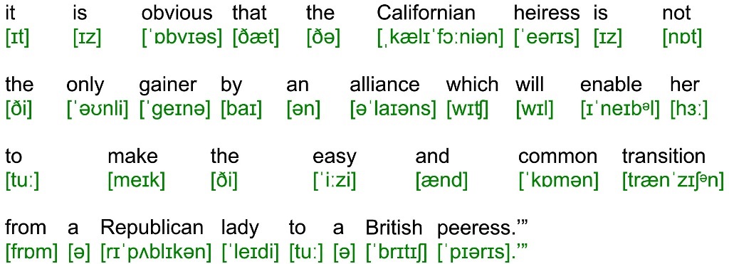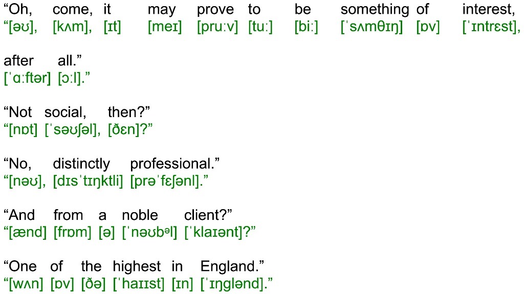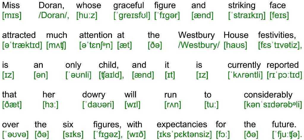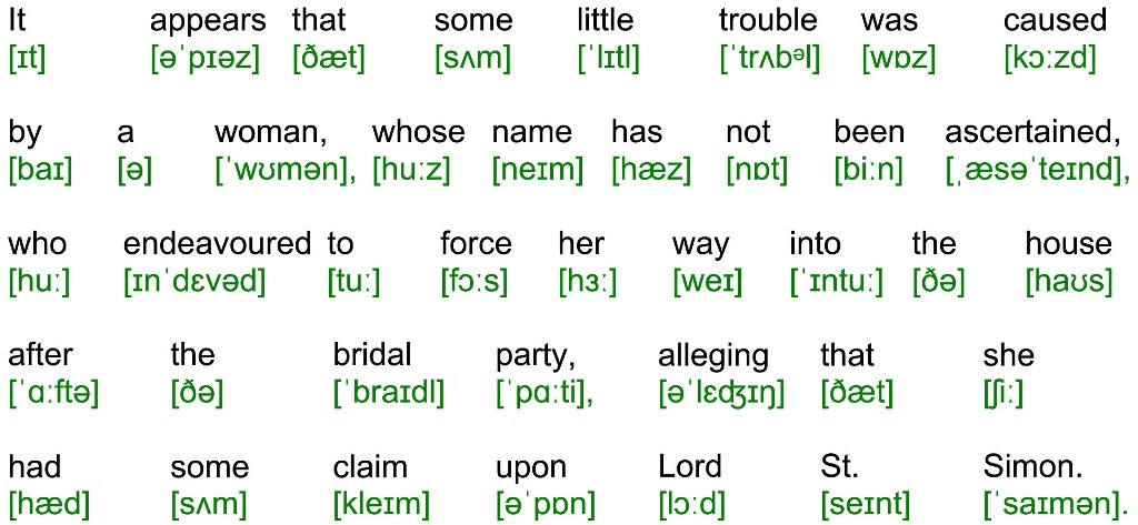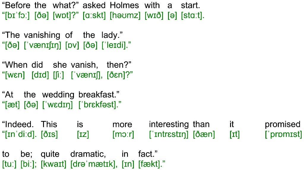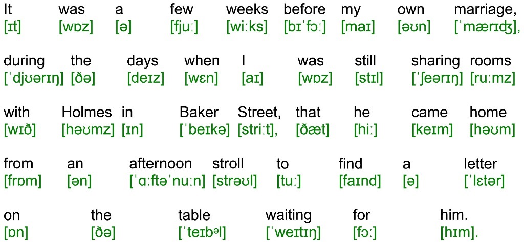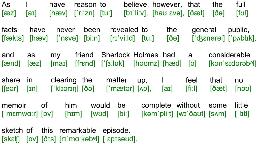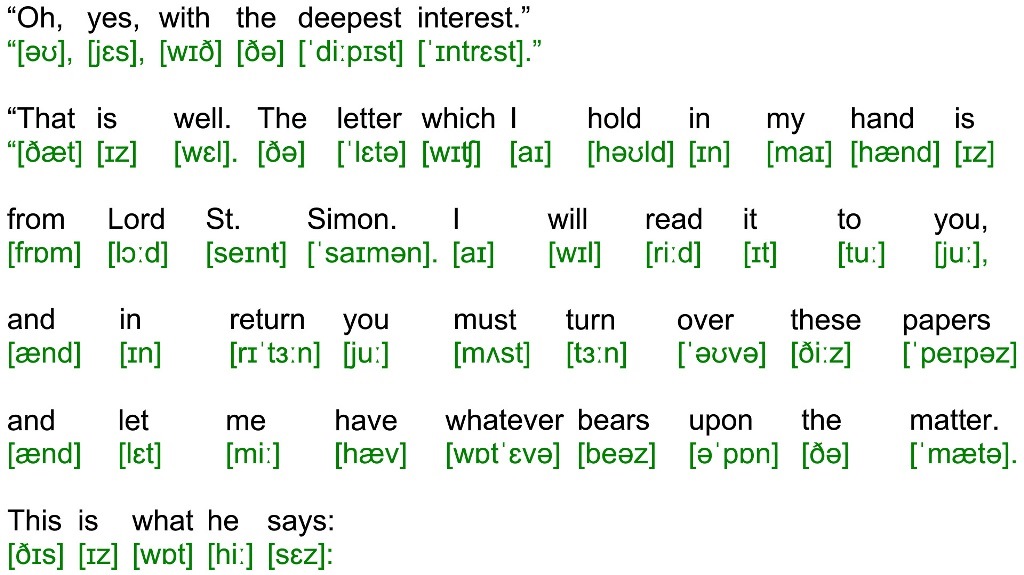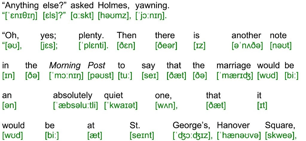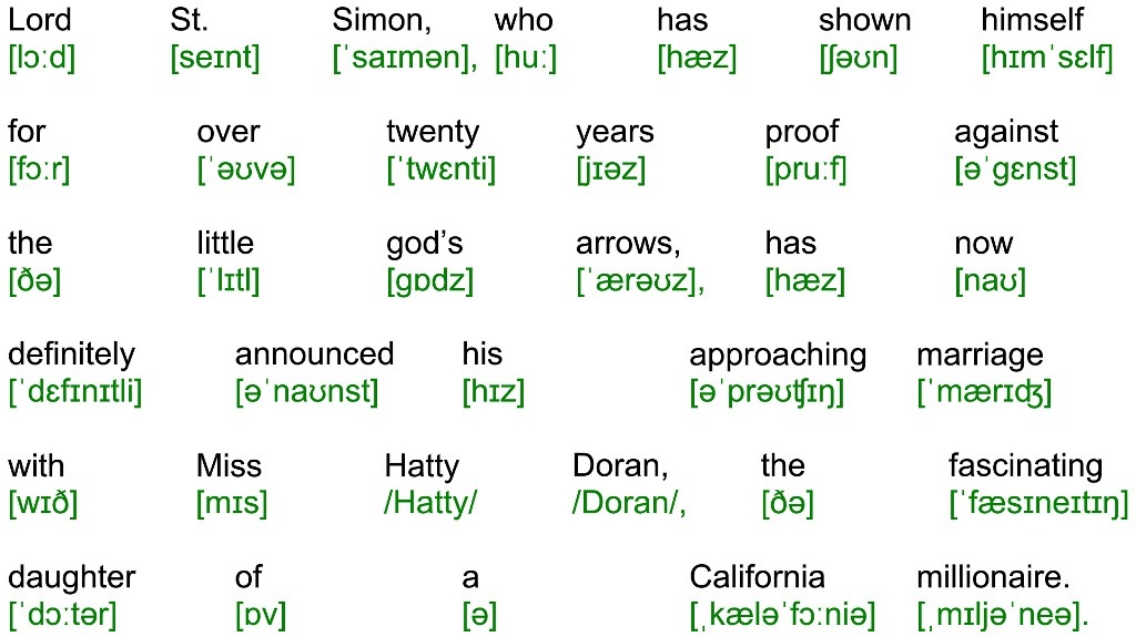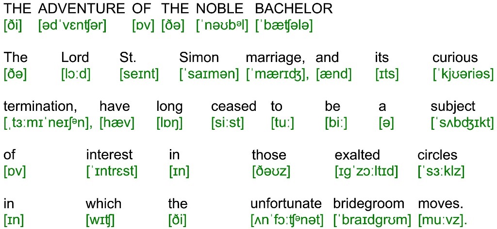 В данной книге приводится транскрипция текста рассказа А.К. Дойла «Знатный холостяк» на английском языке. Текст рассказа разбит на небольшие фрагменты. Фрагменты пронумерованы порядковыми номерами (01, 02,…,63). После номера фрагмента приведены время начала и окончания аудиозаписи текста фрагмента в аудиокниге. Для каждого фрагмента подготовлена транскрипция текста, оформленная в виде иллюстраций с изображением транскрипции текста фрагмента.