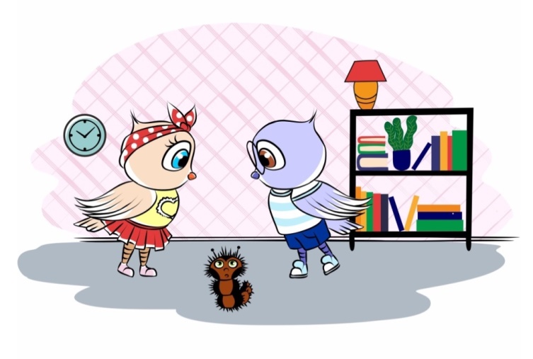 Со-вя-та про-сну-лись и пер-вым де-лом о-кру-жи-ли бан-ку. На них смот-ре-ла кра-си-ва-я ба-бо-чка.