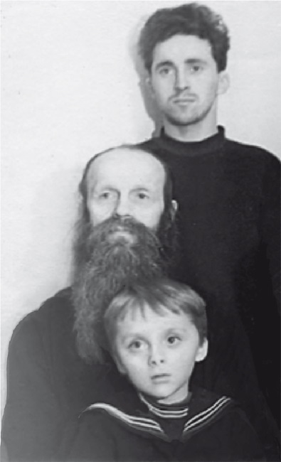 Священник Валерий Поведский с зятем В. И. Петровым и внуком Димой. 1958 год (архив В.И. Петрова)