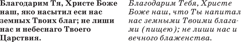 В этой молитве мы благодарим Бога, что Он напитал нас пищею, и просим Его не лишить нас по смерти нашей и вечного блаженства, о чем мы всегда должны помнить, получая земные блага.