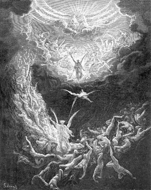 Тогда выступил против Сатаны один из высших ангелов Божиих, архангел Михаил, и сказал: «кто равен Богу? Никто, как Бог!» И произошла на небе война: Михаил и ангелы его воевали против Сатаны, а Сатана и бесы его воевали против них.