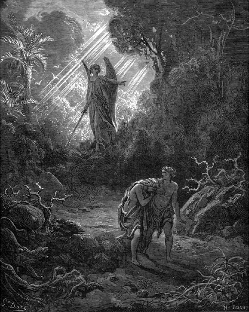 Когда первые люди согрешили, им стало стыдно и страшно, как это и бывает со всеми, кто дурно поступает. Они тотчас же заметили, что они наги. Чтобы прикрыть свою наготу, они сшили себе из листьев смоковницы одежду в виде широких поясов. Вместо того, чтобы получить совершенство, равное Божиему, как они того хотели, получилось наоборот, разум их помрачился, совесть их стала мучить, и они лишились душевного спокойствия.