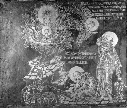 Куст, не сгоравший в огне, который видел Моисей при явлении ему Бога, получил название: «Неопалимая Купина». Он изображал собою состояние избранного еврейского народа, притесняемого и не гибнущего. Он был также прообразом Божией Матери, Которую не опалил огонь Божества Сына Божия, когда Он сошел через Нее с неба на землю, родившись от Нее.