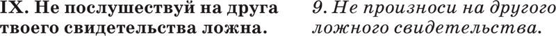 Заповедь эта запрещает лгать, клеветать, говорить о людях дурное, осуждать их, а также верить клеветникам. Заповедь эта повелевает всегда держать свое слово честно.