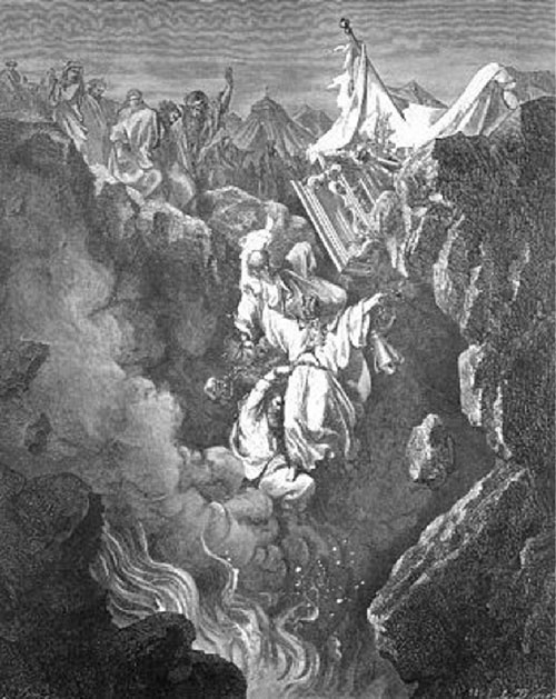 И пошли они кочевать 40 лет в пустынях Аравии. Но и за это время милосердный Господь не оставлял их Своею милостью и посылал им много чудес. Вскоре после осуждения на сорокалетнее странствование, между евреями возникло новое возмущение. Некоторые евреи (предводителем которых был старшина одного племени, Корей) были недовольны тем, что священство предоставлено только племени Аарона. Но Господь наказал их – земля, разверзшись, поглотила бунтовщиков.