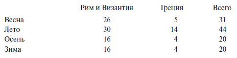 А группируя их по временам года, получим: