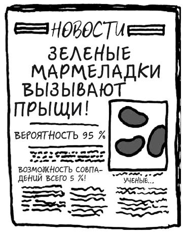 Если понятнее не стало, представьте игральный кубик с 20 гранями, пронумерованными от 1 до 20. Я предсказываю, что если его бросить, то выпадет число 13. Будет круто, если я угадаю, да? Но если я брошу кубик еще 100 раз, а 13 выпадет только раз или два, будет уже не так впечатляюще.