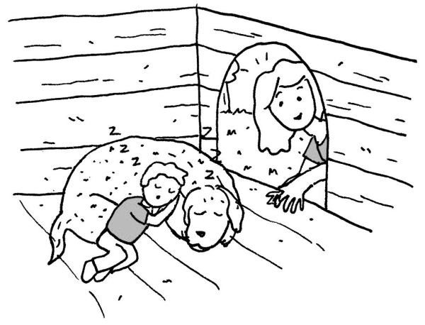 В следующий раз Мэйсон решил поменять тактику. Он опять передними лапами встал на детскую кроватку так, чтобы молодой человек его заметил. Как только Миша увидел в кровати что-то меховое с розовым языком, он стал кричать. Мэйсон начал скулить. Молодой человек перестал. Перестал и Мэйсон. Так продолжалось несколько раз, пока Миша не понял алгоритм. Через полчаса маленький человечек смеялся, периодически скуля, как Мэйсон. Собака тихонько подскуливала вместе с ним.