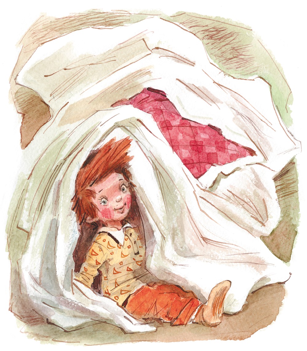 – Поднимай домик на кровать скорее, а то он весь грязный станет.