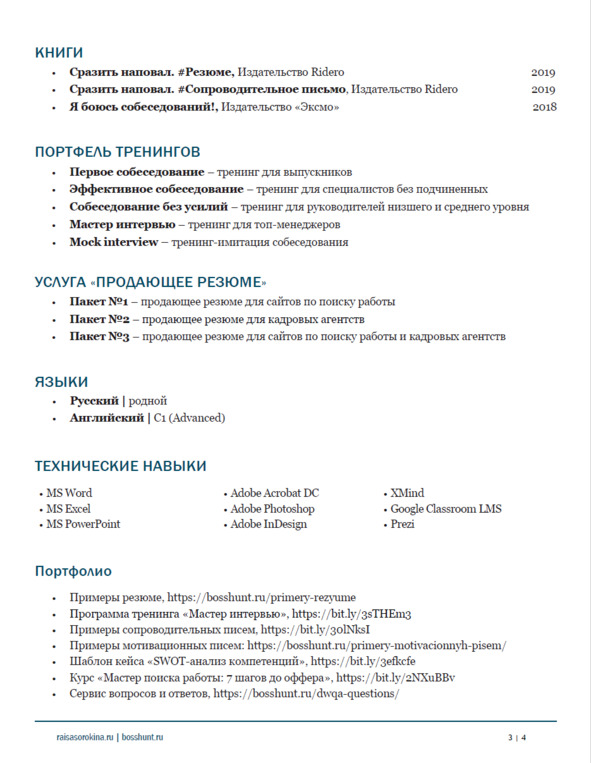 Если вы не уверены в том, что сможете кратко, понятно и грамотно написать о себе все самое важное, что должны узнать о вас другие люди, прочитайте 2-ое издание книги «Сразить наповал. #Сопроводительное письмо» и новую книгу Раисы Сорокиной «Резюме для карьеры». Вы узнаете, какими должны быть резюме и сопроводительное письмо в 2023 году.