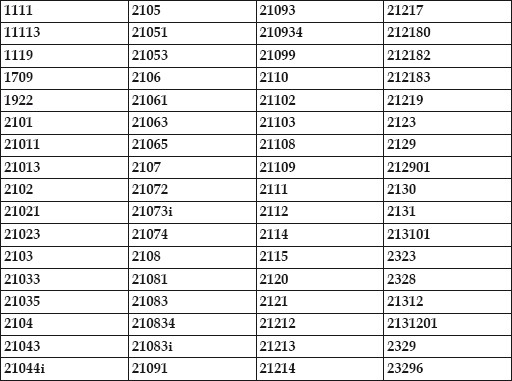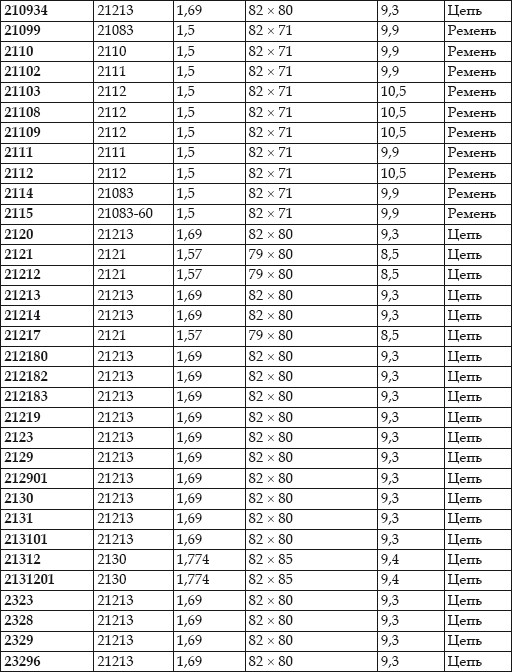 Таблица 1. Модели автомобилей ВАЗ и соответствующие им двигатели