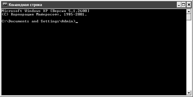 • Откройте окно командной строки Windows. Для этого нажмите кнопку Пуск, в меню выберите пункт Выполнить, в появившемся окне Запуск программы в поле Открыть введите команду cmd и нажмите кнопку OK. На экране появится окно командной строки (рис. 1.25).
