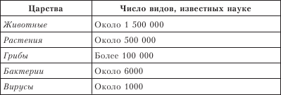 Живой мир нашей планеты бесконечно разнообразен и включает огромное число видов организмов, что видно из табл. 2.