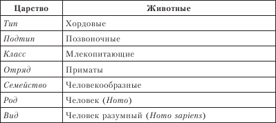 Рассмотрим, например, место в системе живых организмов человека как самостоятельного биологического вида (табл. 3).