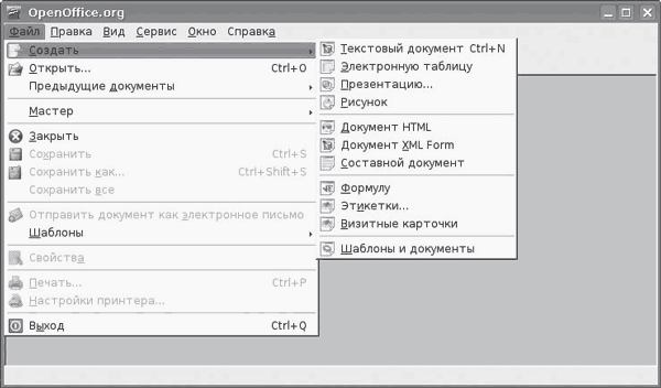 Рис. 2.4. Общее окно OpenOffice.org
