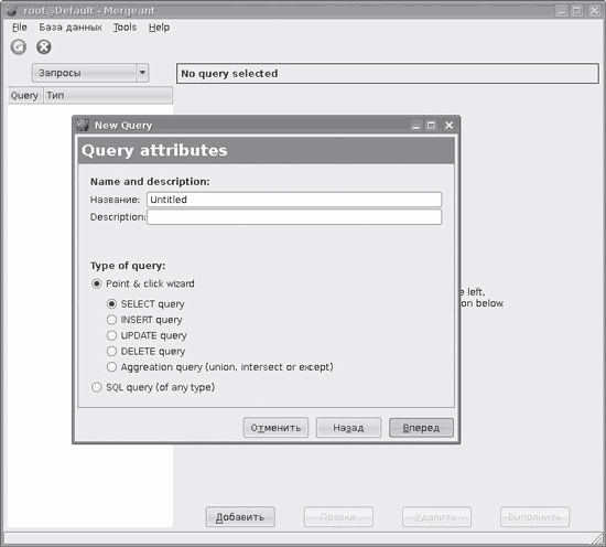 Наконец, графический интерфейс к libgnomedb и libgda, с которым непосредственно работает пользователь, называется Mergeant (рис. 2.16).