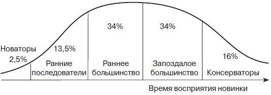 На открытие и в первый месяц работы магазина к вам придут покупатели, которые относятся к типу «новаторы». Как видите на рисунке, их немного в общем количестве потенциальных клиентов, всего 2,5 %. Это самые любознательные и активные клиенты. Они охотно ознакомятся с ассортиментом, даже купят что-то, особенно если вы предложите скидки на первые покупки. Все хорошо пока, не правда ли? Засада в том, что больше вы данных клиентов не увидите. Даже если выдадите им карту постоянного клиента, даже если предложите значительные скидки или подарки. Они пришли к вам в первый и последний раз. Это нормально! Это те покупатели, на обслуживании которых вы еще раз сможете проверить работоспособность своего магазина, как отстроен процесс работы с клиентом, как работает оборудование, на что посетитель обращает внимание. Подобных покупателей используют на так называемом техническом открытии. Это запуск работы нового магазина и примерно первый месяц его работы. Судить об успехе начинания по продажам в первый месяц нельзя. Они могут быть как высокими, так и весьма скромными. Это еще ничего не значит. Основная задача первого этапа – еще раз проверить себя и свою команду на соответствие вашей идее.