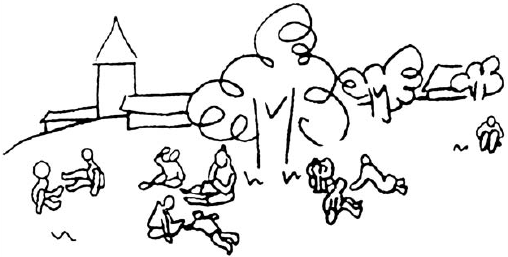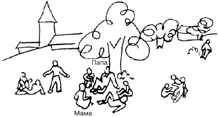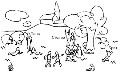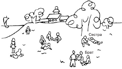 17. Теперь на этом рисунке размести себя и несколько человек. Нарисуй или обозначь крестиком. Подпиши, что это за люди.