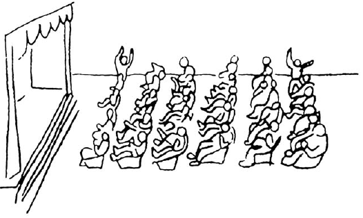 31. Это люди, которые смотрят интересный спектакль. Обозначь крестиком, где ты.