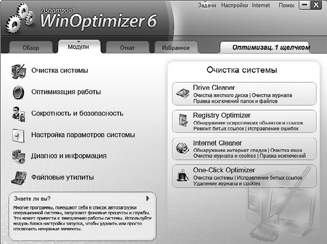 Рис. 1.5. Окно приложения Ashampoo WinOptimizer