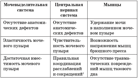 Таблица 5. Условия нормального мочеиспускания