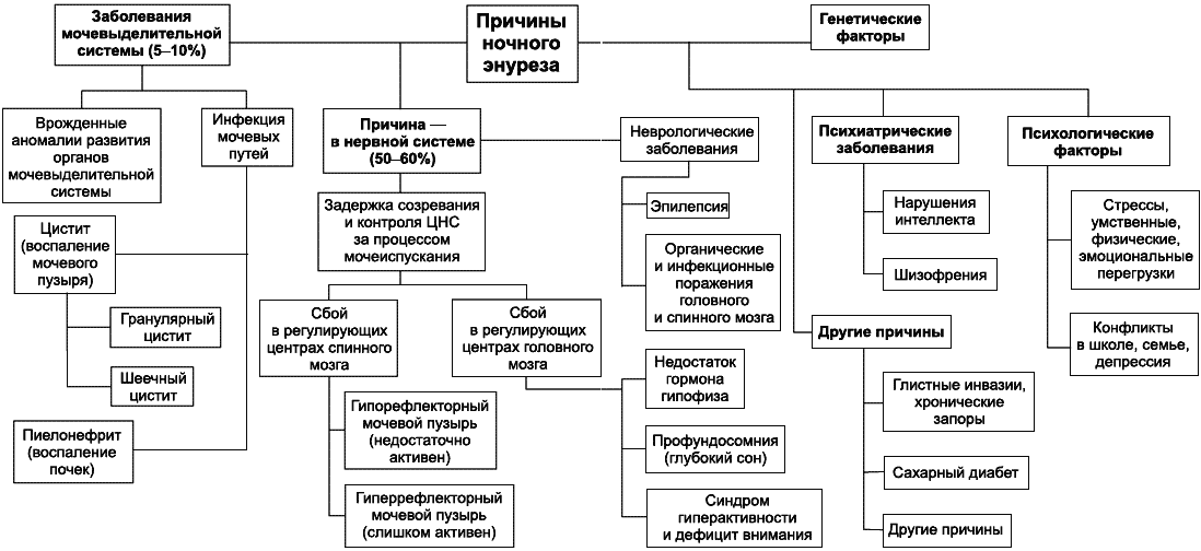 На схеме (рис. 3) подробно показаны все причины энуреза.
