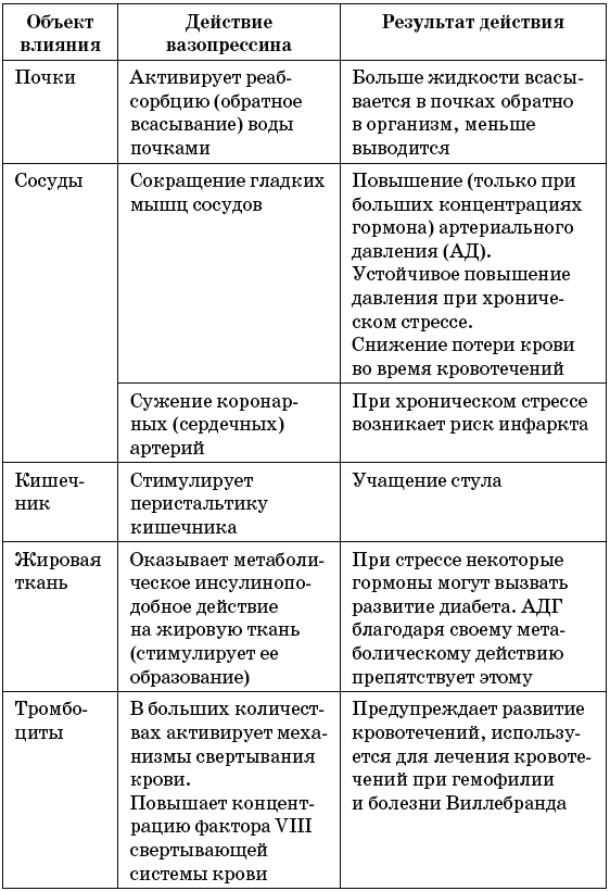 Таблица 8. Воздействие вазопрессина на организм