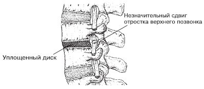 В результате этого усиливается давление в местах соединения суставных отростков верхнего и нижнего позвонков (дугоотростчатые суставы принимают на себя большую нагрузку), что приводит к их деформации, а также воспалению мягких околосуставных тканей.