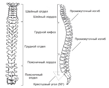 Рис. 2.1. Позвоночник (вид сзади и сбоку)