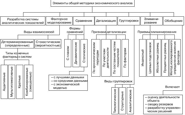 Далее подробнее рассматривается содержание и сущность составных частей (элементов) общей методики экономического анализа.