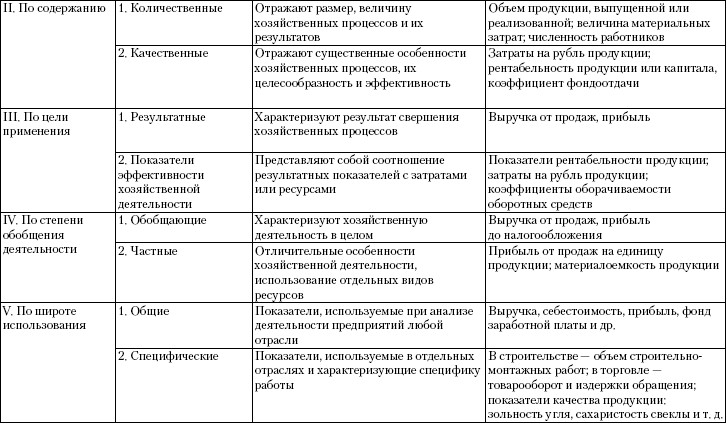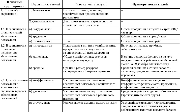 Классификация показателей позволяет лучше разобраться в их природе и принципах расчета (табл. 2.1).