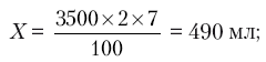 по формуле Н. П. Шабалова объем одного кормления: 3 × 7 × 3,5 = 73,5 мл.