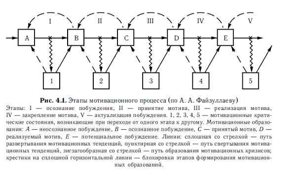 А. А. Файзуллаев (1989) выделяет в мотивационном процессе пять этапов (см. рис. 4.1).