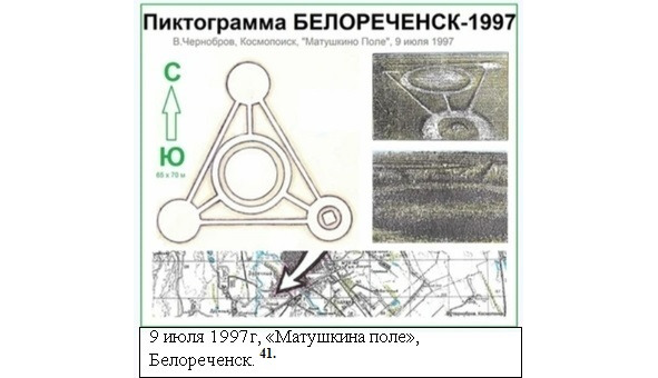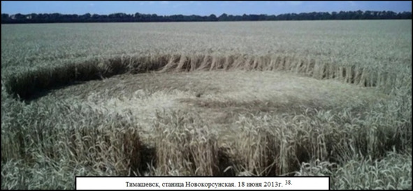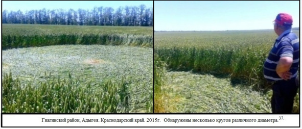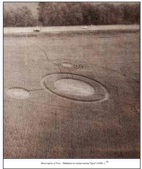 «Круги на полях» появляются не только за рубежом, но и в России! Интересная заметка о «кругах на полях» в России опубликована в журнале «НЛО» (№33 (96) от 16.08.1999г): «Впервые в России видели круги в 1984 году под Борисоглебском. Затем они появились под Рязанью, Тамбовом, в Волгоградской области, под Ейском, рядом с Усть – Лабинском. Нынешним летом число зарегистрированных кругов в России стало рекордным. Ещё в апреле на ячменном поле южнее Новокубанска возникло овальное образование размером 25х27м. Второй круг видели водители у станции Ленинградской. 10 июня появился круг с кольцом диаметром 18,5 метра юго-западнее Новокубанска».