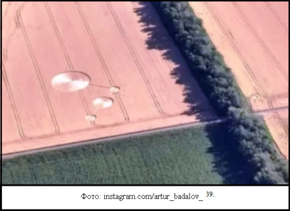 Наиболее интересным является 3 гипотеза – инопланетный фактор. На полях различных сельскохозяйственных культур, будь то пшеница или кукуруза, образуются различные геометрические фигуры, диаметр которых колеблется от одного метра и более. Как правило, внутри этих пиктограмм колосья скручены неведомой силой по часовой стрелке, при этом стебли колосьев согнуты (не сломаны!) под прямым углом. Отмечается изменение в микроэлементном составе почвы и повышение радиации.
