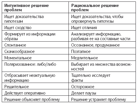 У интуитивного и рационального решения проблем абсолютно разные цели: