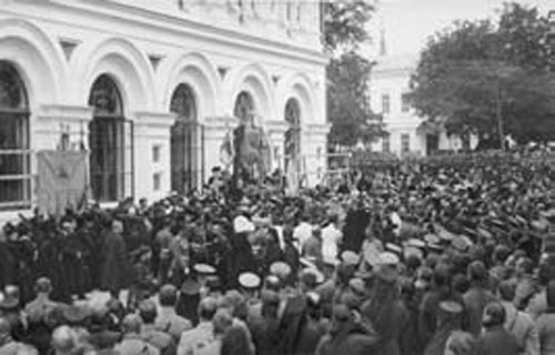Погребение П. А. Столыпина у Трапезной церкви в Киево-Печерской Лавре (9 сентября 1911 г.)
