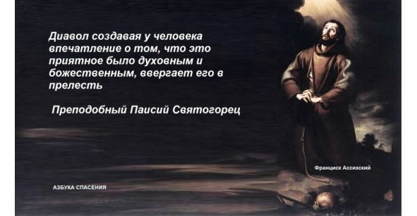 Диавол может явиться в виде ангела или в виде святого. Бес, замаскированный под ангела или под святого, распространяет вокруг себя волнение, смущение – то, что имеет в себе. Тогда как настоящий Ангел или святой всегда распространяют райскую радость и небесное веселье. Смиренный чистый человек, даже будучи неопытным, отличает Ангела Божиего от явившегося в виде ангела света беса. Это происходит потому, что такой человек имеет духовную чистоту и находится с Ангелом в родстве. А вот эгоист и человек плотской легко прельщается лукавым диаволом. Диавол является в виде ангела света, но стоит человеку включить в работу один смиренный помысл, как диавол исчезает…