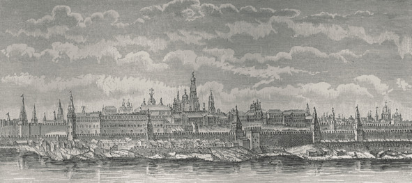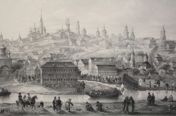 Вид Москвы с Каменного моста. Гравюра П. Пикарта. 1707—1708 гг.
