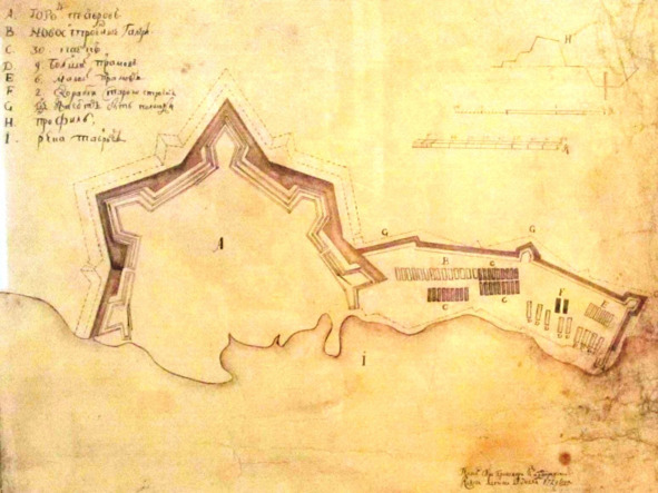 Кораблестроителей очень беспокоило обмеление реки Воронеж после весенних разливов, мешавшее плаванию больших многопушечных судов. Построенный на ней английским инженером Джоном Перри в 1704 г. шлюз мало помогал делу. В 1705 г. Петр I дал указание начальнику Воронежского адмиралтейства Ф. М. Апраксину подыскать ниже города, поближе к устью реки Воронеж, новое место для верфи. Выполняя это распоряжение, адмирал 1 июня 1705 г. заложил при впадении речки Тавровки в Воронеж новую верфь. 8 июня 1706 г. он докладывал царю: «Доношу Вашему Величеству, что начал строить новую фортецию на Воронеже, не доезжая устья Воронежского версты за три, на усть-речки Тавровой. Заложили фортецию на 11 доков; более нельзя: место не позволяет. Доков начали на 5 кораблей, по малолюдству и по недостатку леса, которого на доки идет множество. Людей там 2 500 человек, ожидаю еще 500. Леса готовят в Добром и на Усмони 1 500 человек. Инженер человек добрый: только знать, что это дело ему впервые. Место изрядно, хотя и песчано. Фортеция по реке 200 сажен, от реки в поле 140; положение точно как в Таганроге».117