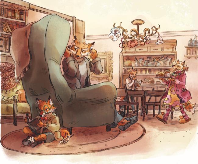 Лис Жерве, стоявший на площадке второго этажа, где он иногда тайком точил когти о перила, казался огромным и грозным. Впрочем, стоило ему спуститься, как стало видно, что на самом деле это милейший немолодой лис и сейчас он с тревогой смотрел на сына. Бывший продавец книг, всю жизнь заботившийся о репутации своего магазина, никак не мог понять, по какой причине его наследник ушёл с капитанского мостика в разгар рабочего дня!