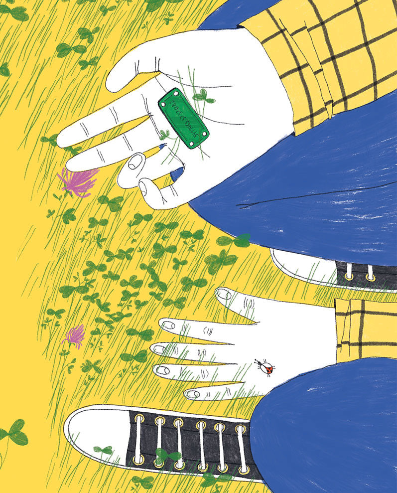 Когда Роботёнок улетел, Валя ещё долго неподвижно стоял и смотрел в небо. Он очень беспокоился за Роботёнка: «Долетел ли он до Электрогорска? Успели электророботы его просушить? Когда мы снова увидимся?». Валя сел на траву, и ему на секунду показалось, что деревья вокруг стали бесконечно вытягиваться вверх. Вдруг Валя почувствовал мизинцем что-то гладкое и холодное. Он быстро одёрнул руку, подумав, что это змея. Но в траве никого не было, только что-то тускло блестело, как старое зеркало. Это была крошечная металлическая табличка.