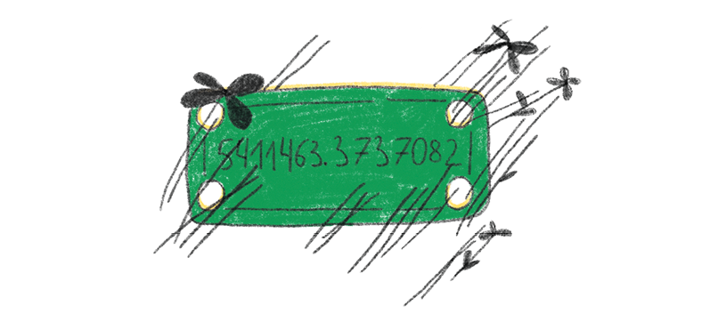 «Она точно такого же цвета, как и сам Роботёнок… Наверное, она выпала, когда он взлетал!» – подумал Валя и повертел табличку в руках. Присмотревшись, он заметил, что на ней выгравированы мелкие цифры «5411463.3737082». Валя не знал, что они означают, и положил табличку в самый маленький карман джинсов, чтобы не потерять.
