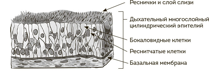 На незримом, микроскопическом уровне слизистая покрыта клетками со специальными отростками – ресничками, согласованное и стройное биение («мерцание») которых – залог нормального функционирования всей системы полости носа. Реснички гонят слизь, как бы это странно ни звучало, НАЗАД, в горло, откуда она после долгих мытарств и приключений попадает в желудок и там бесславно заканчивает свой путь в соляной кислоте.