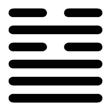 Сплошная линия на пятом месте – единственная сплошная линия в этом гуа. Она является хозяином гуа. Ее качество – твердость и сила, а место – центральное и правильное. Она символизирует правильного человека на правильном месте, который обязательно окажет большое влияние на свое окружение. Имеется пять уступающих линий. Все уступающие линии подчиняются сплошной линии на пятом месте, кроме уступающей линии вверху. Эта линия представляет собой того, кто выходит за рамки дозволенного.