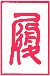 Люй – это обратная сторона предыдущего гуа «Малое накопление», которая указывает на ситуацию, когда в процессе продвижения лучше сделать перерыв. Эта гуа – исполнение – символизирует выполнение своего долга. Идеограмма Люй представляет собой сложное, состоящее из четырех частей изображение человека, идущего в обуви. В верхней части идеограммы имеется одна горизонтальная линия, идущая слева направо, затем справа налево и до самого низа левой стороны. Изогнутая горизонтальная линия изображает голову человека, а длинный вертикальный штрих – человеческое тело, стоящее вертикально. Остальная часть идеограммы разделена на две части. Слева расположены три изогнутых штриха, символизирующие отпечатки трех маленьких шагов. Справа вверху изображен башмак. Под башмаком находится еще одна идеограмма, символизирующая действие ходьбы.
