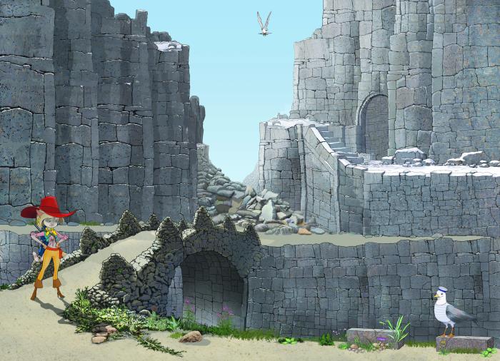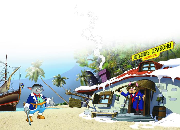 Вокруг корабля развернулась настоящая верфь: несколько складов, лесопилка, цех кручения канатов, мастерская по пошиву парусов, небольшая кузня… И повсюду – почти игрушечные фигурки пиратов: пилят, строгают, латают, крутят, куют.