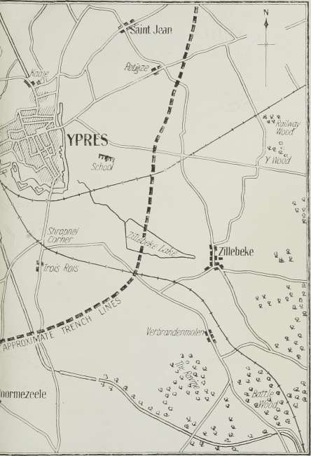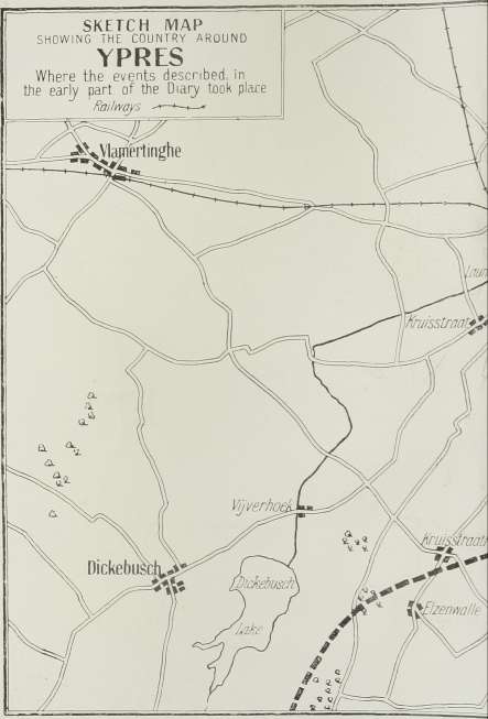 Примерная карта местности вокруг Ипра, где происходили события, описанные в первой половине дневника