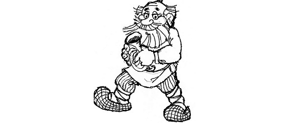 Крышка бабушкиного сундучка медленно со скрипом откинулась, и оттуда с кряхтением вылез аккуратный крохотный старичок. Одет он был в классический крестьянский костюм: старая, но очень чистая рубаха в горох с косым воротником и навыпуск, большие, не в размер, лапти, сатиновые штаны. У него было круглое добродушное лицо, пуговичный нос, а глазки светились лукавством. Короткая, но пышная борода занимала значительную часть его фигуры. Одной рукой он держал за хвостик крупную луковицу, а другой – то ли причудливую свистульку, то ли рожок, в который незамедлительно принялся дудеть.