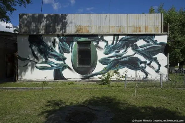 Беларуский блогер Максим Мирович четыре раза побывал в Зоне отчуждения и успел сделать много фотографий, которыми дополнил свои истории. «В городе Чернобыль сейчас нет «гражданского населения», но зато есть множество работников Зоны отчуждения – они живут в городе вахтовым методом в общежитиях. Общежития размещаются в бывших жилых домах. Внешне Чернобыль напоминает обычный провинциальный украинский городок – там абсолютно мирные и тихие дворики, оставшиеся ещё из «довоенной» жизни. Исключение – в Чернобыле очень чисто и постоянно что-то метут (повышенные требования радиационной безопасности).И ещё одна узнаваемая деталь чернобыльской жизни – вот такие внешние трубы теплотрассы. Копать землю в Чернобыле нельзя (чтобы не поднимать ушедшие в землю радионуклиды), и поэтому все трубы в городе проводят по земле. В Чернобыле работает несколько вполне обычных магазинов, которые немного напоминают советские сельпо. А ещё в 2017 году в Чернобыле открылся вполне приличный хостел с вайфаем (не шутка). Правда, остановиться там могут только те, у кого есть разрешение на посещение ЧЗО. От остальной современной жизни Чернобыль тоже старается не отставать, недавно на стене одного из местных зданий появился вот такой мурал». Источник: https://clck.ru/35kAbL